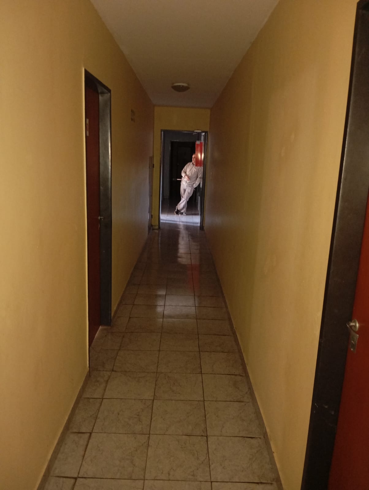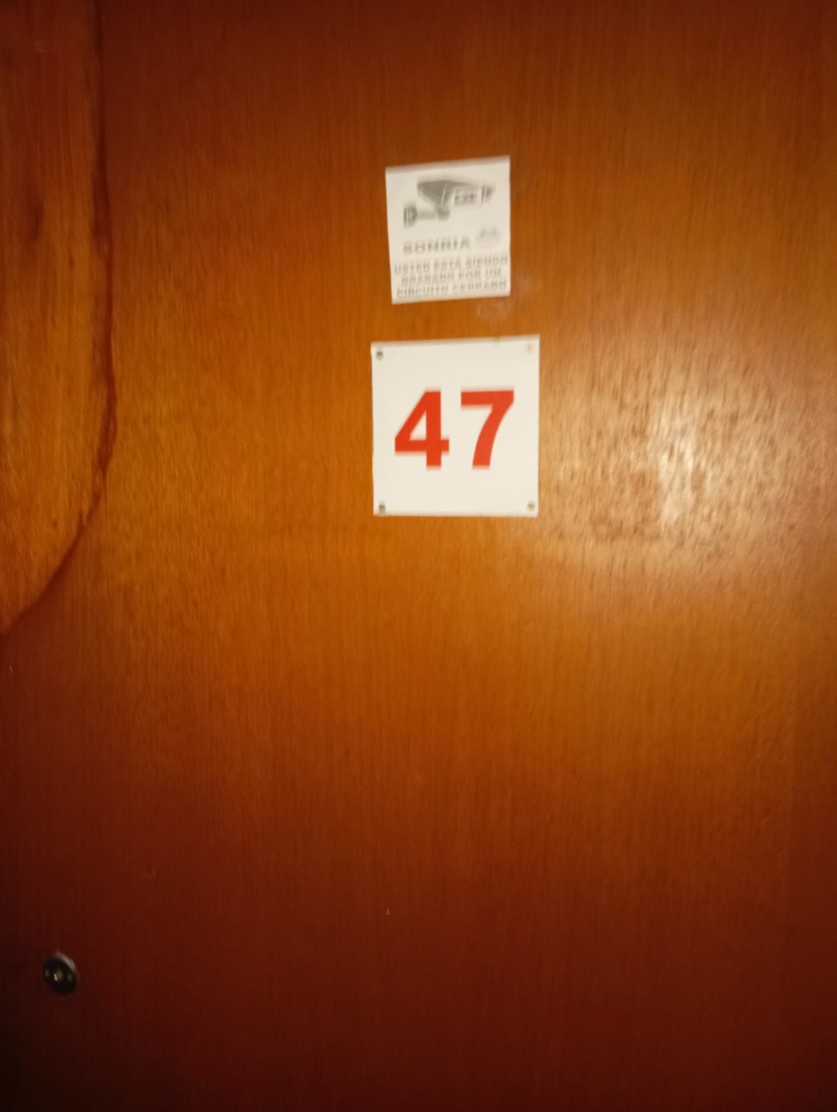 con un pasillo (... ilegible) directamente a un departamento identificado como unidad 47, con placa en la puerta. Accedemos a el y nos encontramos con una superficie total de 38 mts2 aproximadamente con los siguientes ambientes: una cocina comedor piso de cerámico, paredes pintadas con rastro de humedad en dos de sus paredes, bajo mesada cocina y termotanque eléctrico, un dormitorio con nicho de placard, pisode cerámico, paredes pintadas una con humedad, un baño con ducha, sanitorios y accesorios sulfatados,