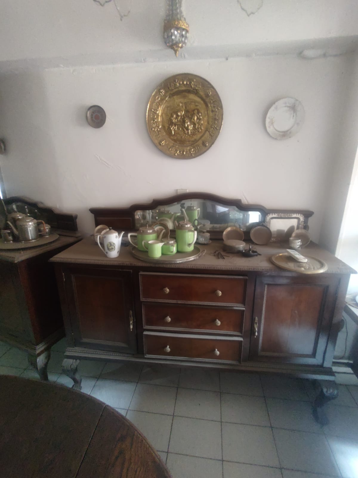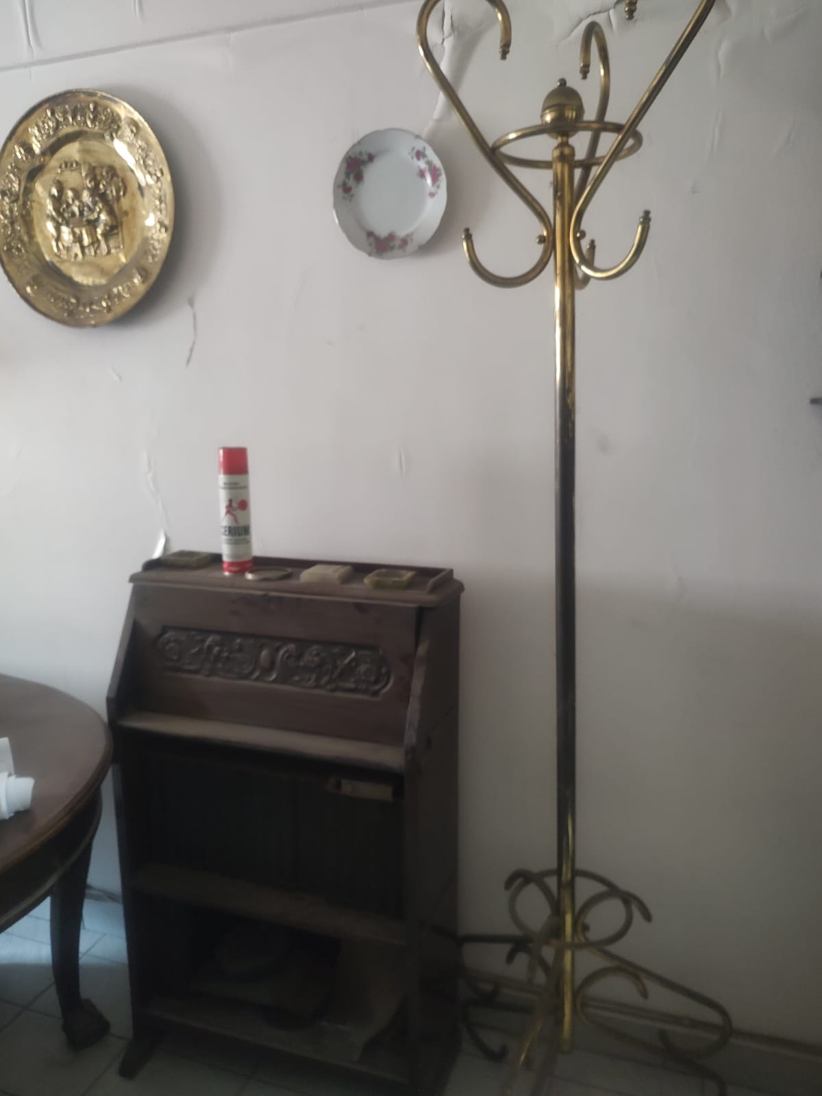 Juego de mesa de madera, juego de seis (6) sillas de madera. Aparador antiguo, juego de té en seis piezas, más un plato del mismo material. Aparador antiguo. Aparador exhibidor, juego de copas, vasos y jarras de vidrio. Aire Acondicionado marca TCL de aproximadamente 2500 frigorías. Calefactor marca eskabe. Televisor pantalla plana de 29 pulgadas. Heladera marca Marshal. Lavarropas. Cocina. Aire Acondicionado de pared. Candelabro de bronce, cenicero de piedra, dos platos de cobre de 40 x 40 cm, 2 candelabros de hierro, cadenas de cobre, cuadro enchapado, porta cenicero de madera y candelabro de madera. Cama de dos plazas y 2 mesas de luz. Juego de té, mantelería y servilletas, juegos de platos, platos chicos, fuentes, teteras de porcelana, juego de ensaladeras, alacena y trajes envueltos en bolsas. Dos sillas mecedoras. 2 lámparas de cobre con vidrio, lámpara de pie, luminaria de vidrio y cobre, luminaria de vidrio y bronce, 2 lámparas de madera tallada. Araña pequeña de bronce, araña de cobre, araña de cobre, perchero de bronce. Un escritorio, cuenta con juego de 3 sillas. 2 muebles de piso, repisa esquinera de madera con adornos, mueble y cajonera con espejo, escritorio estilo secreter con biblioteca. Espejo con estante de hierro y base de mármol, escritorio de madera, con cajones a ambos lados y espejo oval con marco de madera. Armario empotrado con cajones, 2 mesas de luz con cajones y puerta, mueble de madera con 12 cajones, mesa oval ratona de madera recubierta.