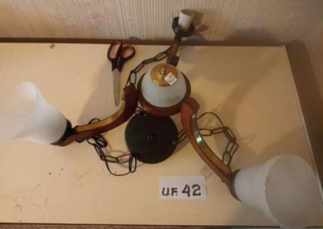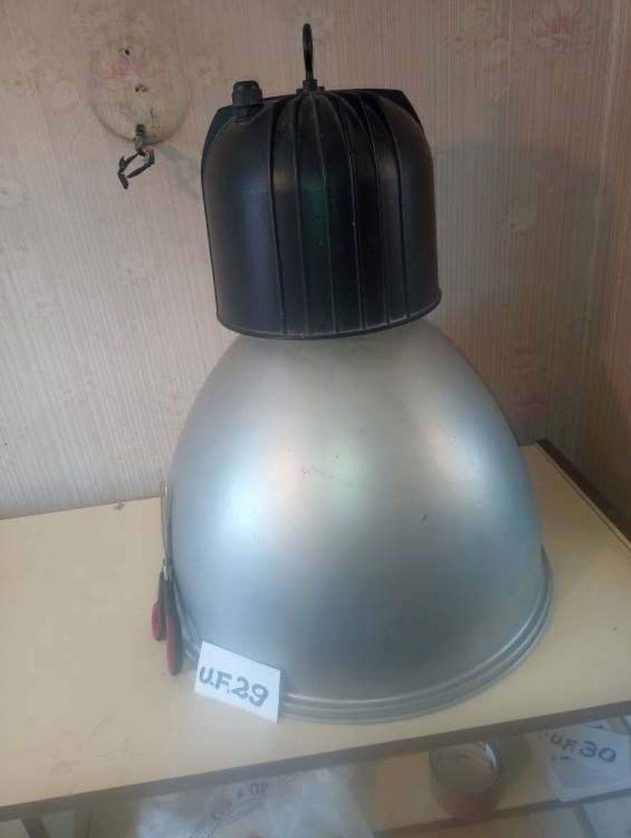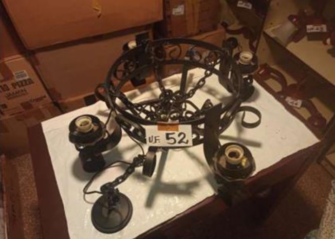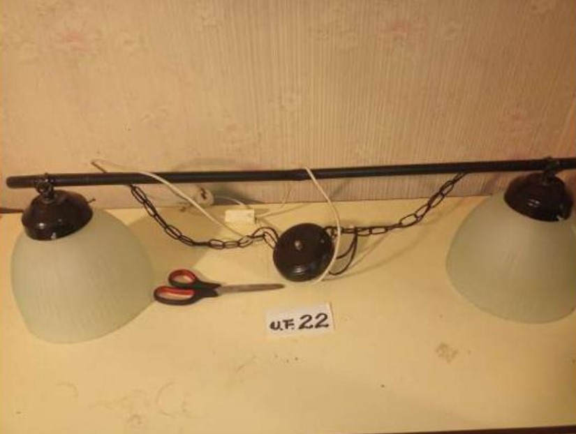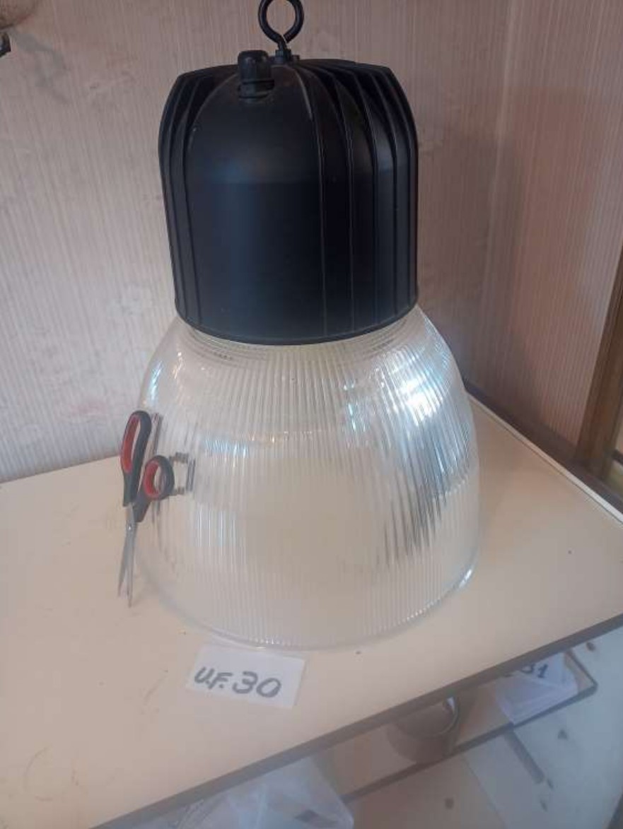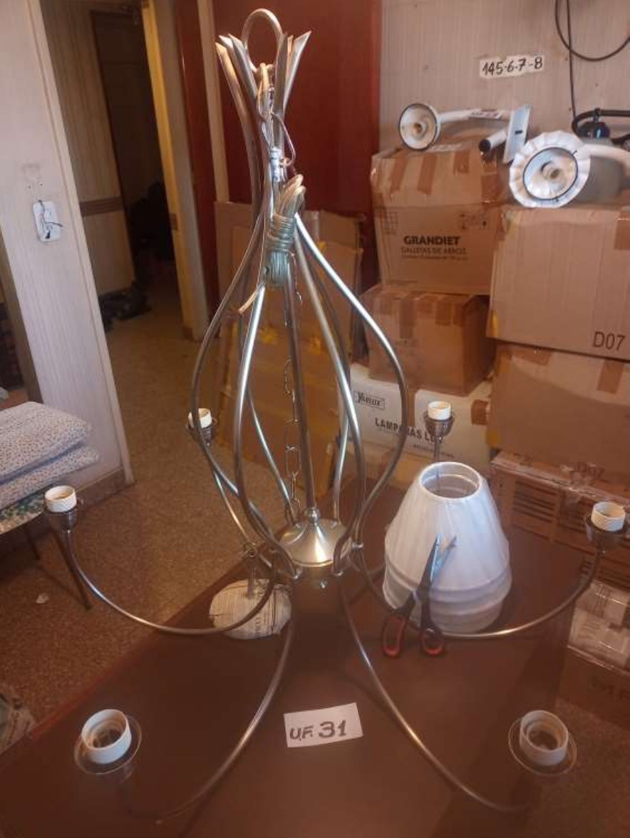 4 apliques vidrio, 1 lámpara de metal, 1reflector de luz escenario, 1 spot p/ embutir, 6 tulipas de vidrio, 11 pantallas para velador medianas, 1 base ventilador.