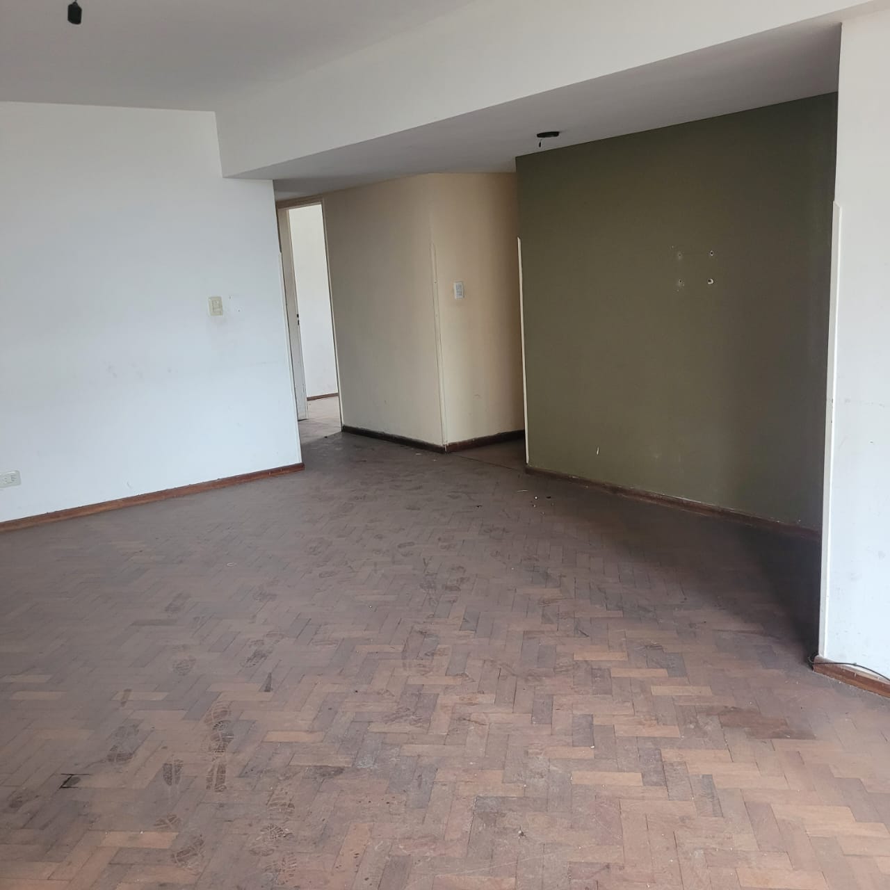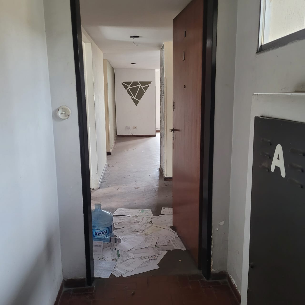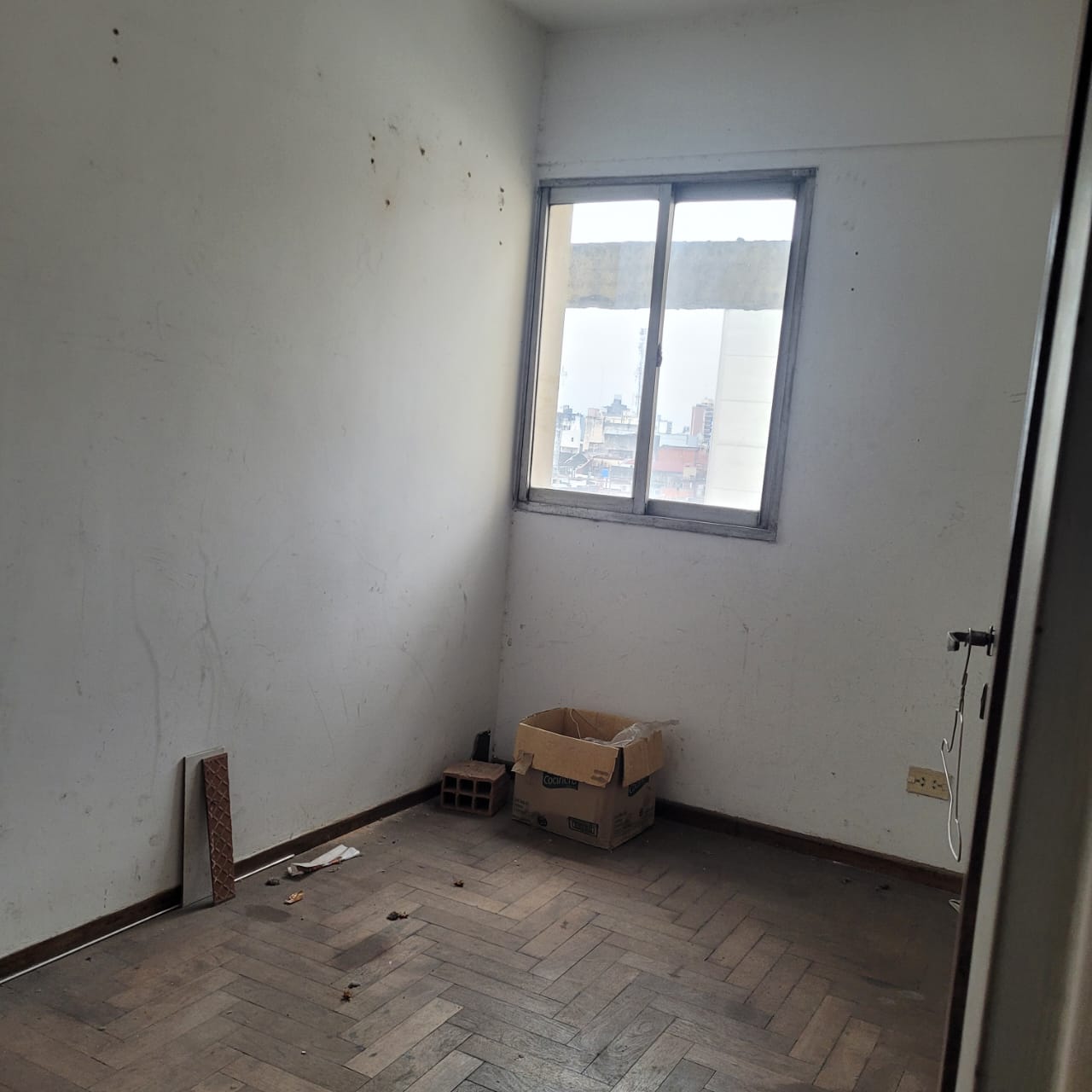 El presente inmueble se encuentra desocupado. Se trata de un edificio de departamentos en altura, de 8 pisos divididos en departamentos A y B, se trata de un edificio antiguo, piso de mosaicos y parquet, techo de loza, ventanas de aluminio y puertas de madera, con balcón vista a calle San Martín, cuenta con servicios de luz, agua y gas los cuales no se encuentran habilitados. El estado de conservación es regular, debido a su desocupación, pintura gastada, parquet sin lustrar, mesada de cocina quebrada y baño toilette con perdida. Distribución: cuenta al ingresar una habitación de servicio con baño privado, una cocina sin artefactos, con bajo mesada completa, campana y calefón, living comedor bien iluminado, en la parte privada nos encontramos un toilette, 3 dormitorios con placares empotrados con ventanas y celosias, un baño principal con bañera y ducha y artefactos.