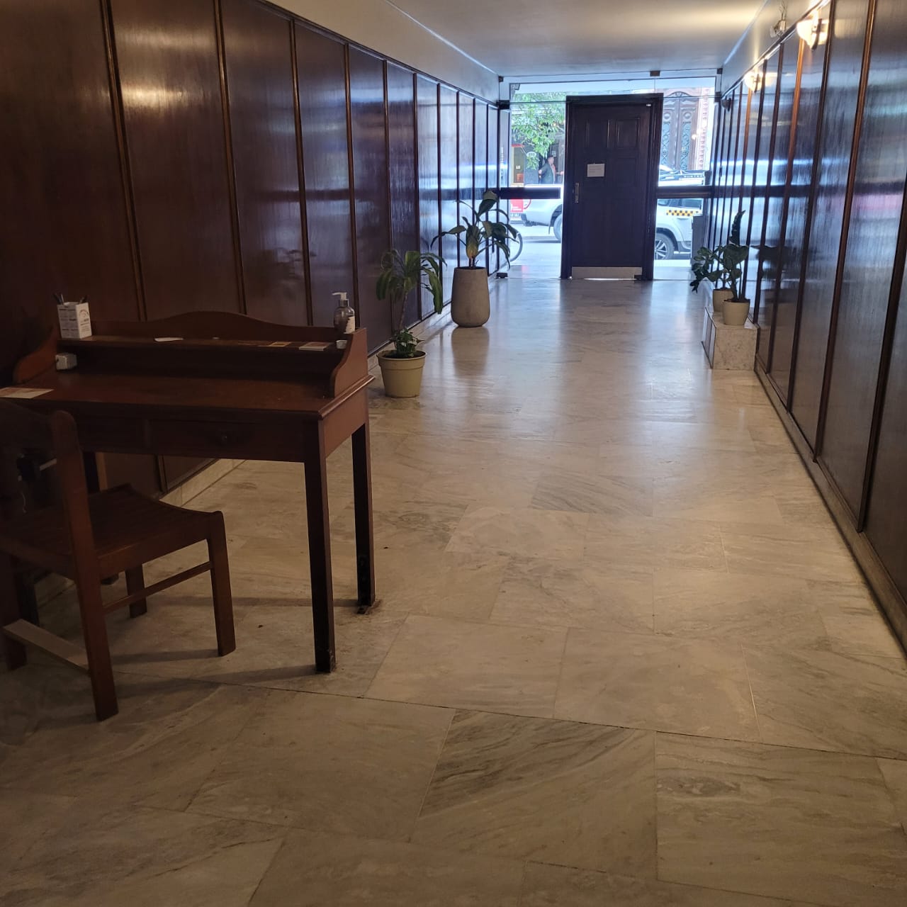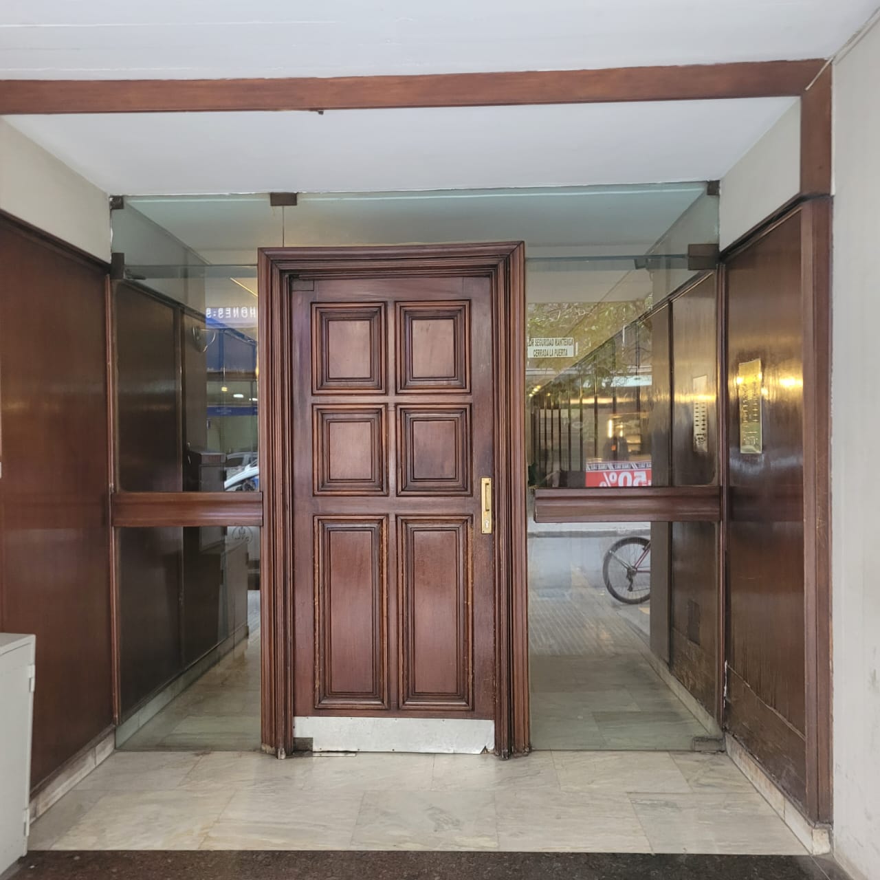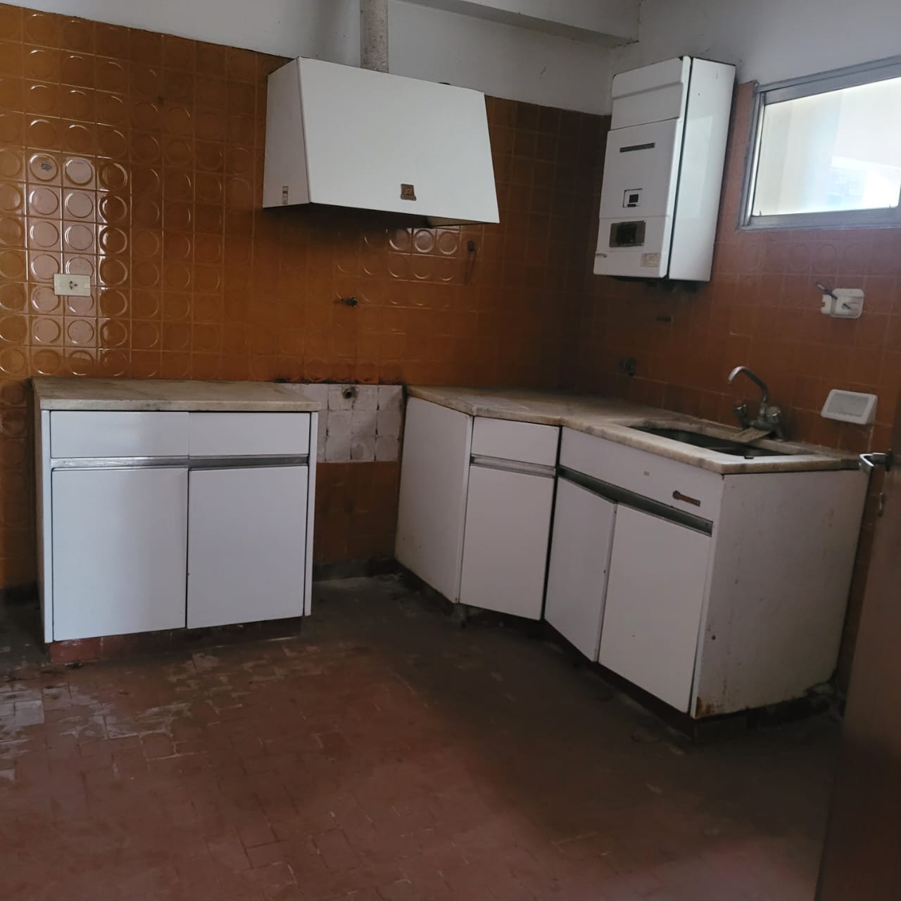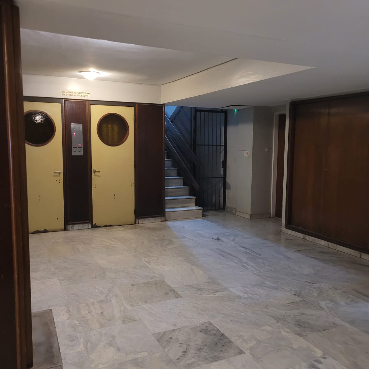El presente inmueble se encuentra desocupado. Se trata de un edificio de departamentos en altura, de 8 pisos divididos en departamentos A y B, se trata de un edificio antiguo, piso de mosaicos y parquet, techo de loza, ventanas de aluminio y puertas de madera, con balcón vista a calle San Martín, cuenta con servicios de luz, agua y gas los cuales no se encuentran habilitados. El estado de conservación es regular, debido a su desocupación, pintura gastada, parquet sin lustrar, mesada de cocina quebrada y baño toilette con perdida. Distribución: cuenta al ingresar una habitación de servicio con baño privado, una cocina sin artefactos, con bajo mesada completa, campana y calefón, living comedor bien iluminado, en la parte privada nos encontramos un toilette, 3 dormitorios con placares empotrados con ventanas y celosias, un baño principal con bañera y ducha y artefactos.